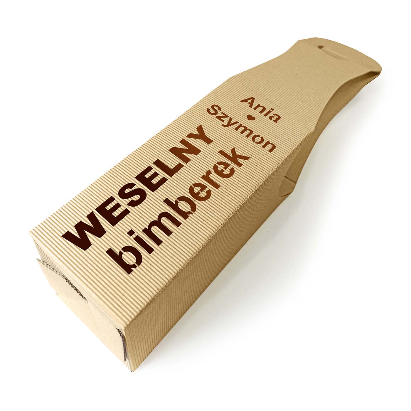 Ekologiczne opakowanie wykonane z ozdobnej tektury falistej z wyciętym laserowo napisem oraz imionami Młodej Pary