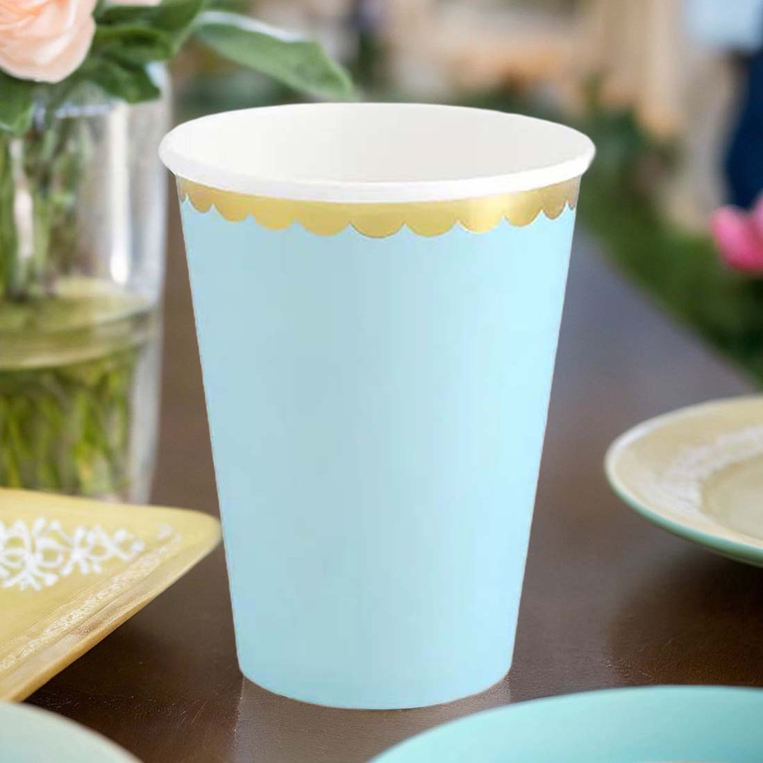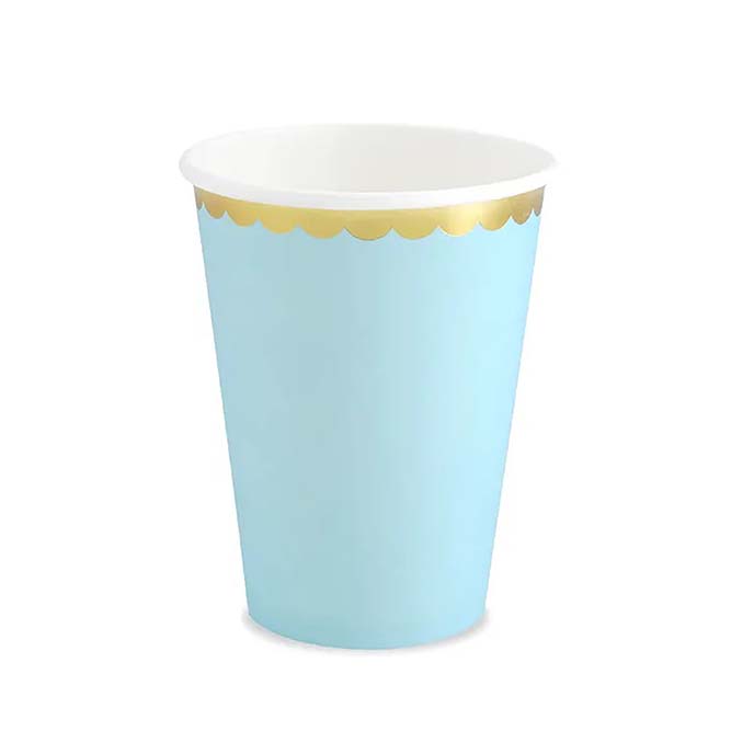 Kubeczki niebieskie ze złotym brzegiem - 220 ml - 6 szt.